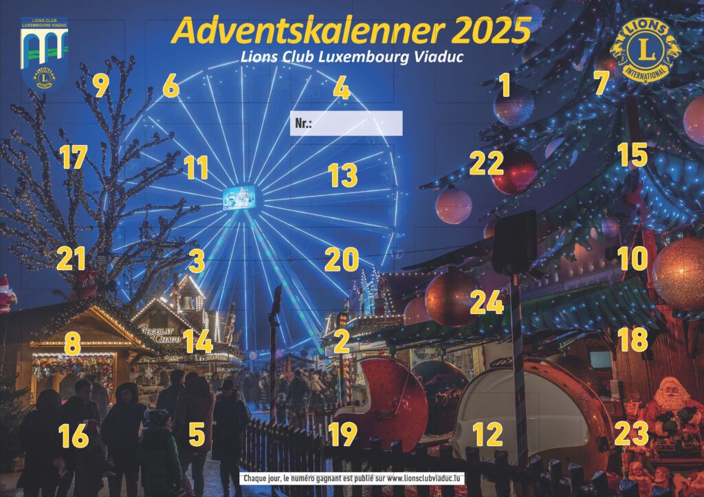 Chaque jour, le numéro gagnant est publié sur le site https://lionsclubviaduc.lu/alendrier-avent